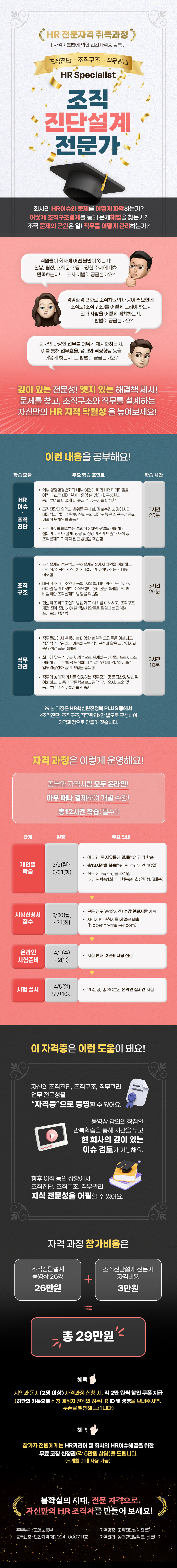 ๊ธฐ์ ์ด ์๊ตฌํ๋ HR ์ญ๋์ ๊ทผ๋ณธ์ ์ผ๋ก ๋ณํํ์ต๋๋ค. ์ด์ ๋จ์ํ ์ธ์ฌ ์ด์์ ๋์ด, ์กฐ์ง์ ๋ถ์ํ๊ณ ์ฑ๊ณผ๋ฅผ ๊ทน๋ํํ๋ ๋ฅ๋ ฅ์ด HR์ ํต์ฌ ๊ฒฝ์๋ ฅ์ด ๋์์ต๋๋ค. ์กฐ์ง์ง๋จ, ์กฐ์ง๊ตฌ์กฐ์ ์ง๋ฌด ์ค๊ณ ์ญ๋์ ๊ฐ์ถ HR ์ ๋ฌธ๊ฐ๋ ์์ฅ์์ ํฌ์ํ ๊ฐ์น๋ก ์ธ์ ๋ฐ๊ณ ์์ต๋๋ค. HR ์ค๋ฌด ๊ฒฝํ๋ง์ผ๋ก๋ ์ปค๋ฆฌ์ด ์ฑ์ฅ์ ํ๊ณ๊ฐ ์์ต๋๋ค. ์กฐ์ง์ ๋ค๋ฃจ๋ ์ ๋ฌธ๊ฐ๊ฐ ๋์ด์ผ ๋น๋ก์ ๊ฒฝ์์ง์ ํต์ฌ ํํธ๋๋ก ์ธ์ ๋ฐ๊ณ , ์ง์ ๊ฐ๋ฅํ ์ปค๋ฆฌ์ด๋ฅผ ๋ง๋ค์ด ๊ฐ ์ ์์ต๋๋ค.